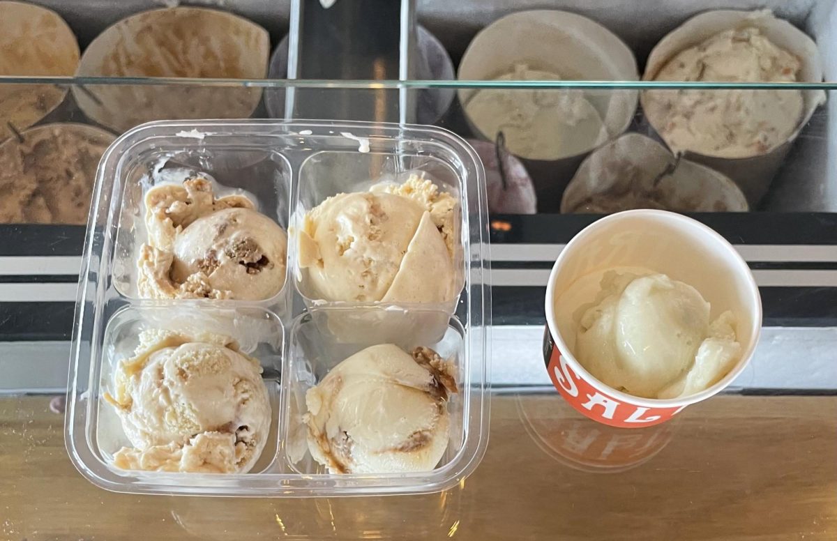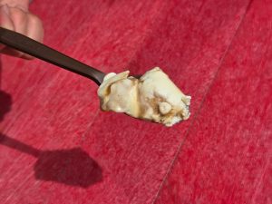 Apple and Cheddar Cinnamon Rolls was one of the flavors we were most excited to try. It is made with the same base as the Salt & Straw Smoked Mac and Cheese ice cream from the company’s August 2024 monthly pint series, using Beecher’s Smoked Flagship Cheese. The ice cream had a flavor profile almost identical to cheesecake — with the faintest apple flavor that was often drowned by a cheesy umami — similar to the taste of salted cheese foam topping on various tea drinks. The ratio of cinnamon roll dough to ice cream was slightly high, so its texture leaned closer to ice cream cake than ice cream. If you are a fan of mix-textured ice cream, this one is for you.