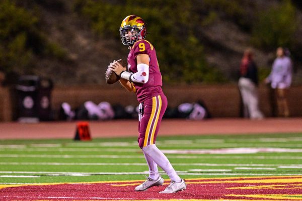 Quarterback Blake Miller (11) prepares to make a pass. The Falcons are currently ranked 12 in the San Diego Section. Photo courtesy of Anna Scipione.